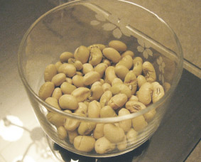 福豆は熱湯に浸かることでいい感じに柔らかくなります。
