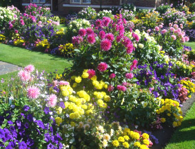 色とりどりの花が咲き乱れているが、ほとんどが外来種。