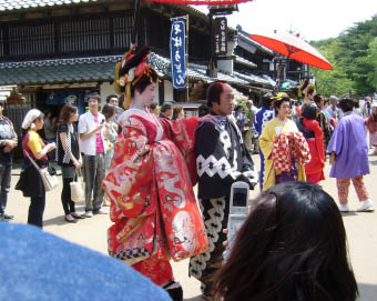 そのうちに「花魁道中」が始まるというアナウンスがあったので、それを観に外へ。