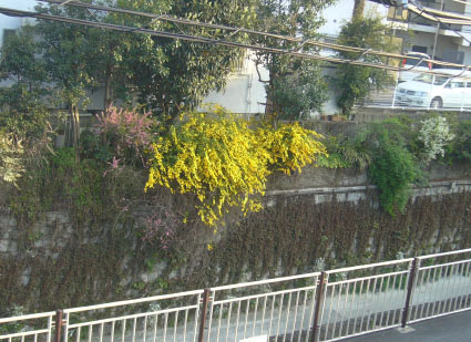 うちとの間に川があるため、春になると土手沿いにいろいろな花が咲きます。