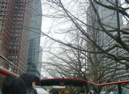 今はご覧のように枯れ木ですが、新緑や紅葉の季節はすごい迫力でしょうねぇ。枝越しに見える高層ビル群というのもまた一興ですが。
