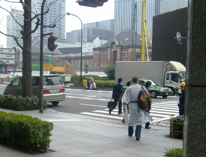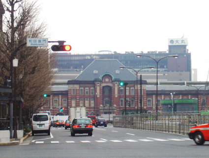まずは、東京駅丸の内南口からお濠に向かってまっすぐに延びる通り(行幸通り)を走ります。