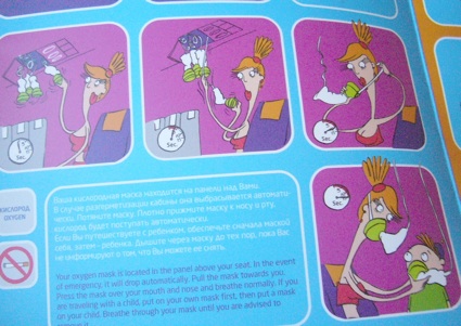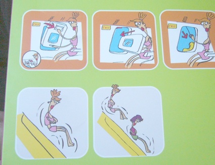 ただ、このエアライン、エマージェンシーの案内イラストがものすごくインパクトあって、それだけが楽しめた。