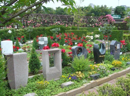 日本古来の墓地のように墓石がみっしり埋まってる墓地ではなく、ヨーロッパ風のガーデンと一体化しているような墓地です。